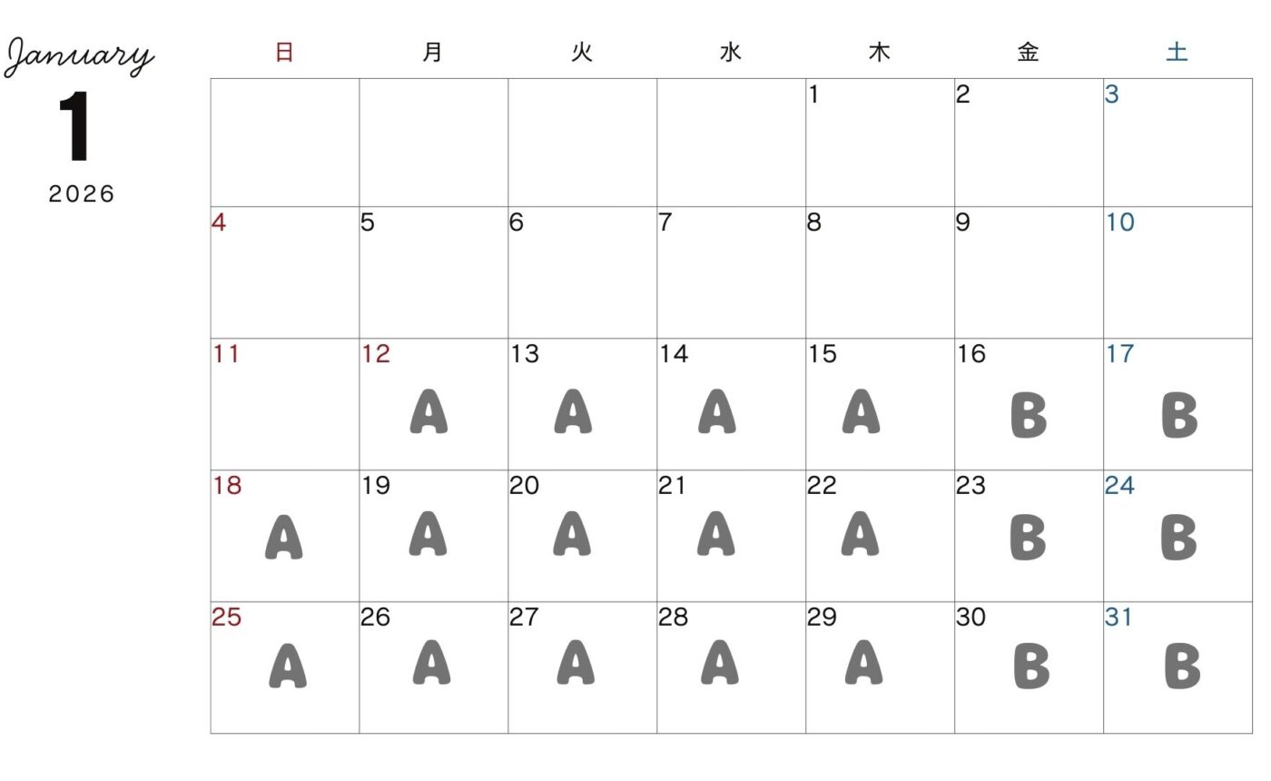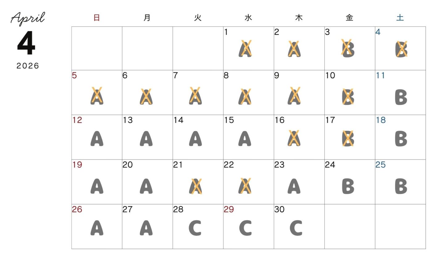 カレンダーの料金は、1名~3名様ご利用時の合計の料金になります(税込み)